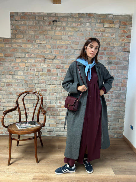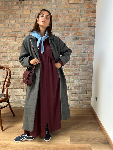 Il capo ha vestibilità abbondante senza essere over. La spalla è volutamente un po' scesa per creare quel look rilassato. La lunghezza è alla caviglia. Se hai dubbi sulla taglia o hai misure di taglie differenti, contattami o lascia le tue misure nella box "note" al momento dell'ordine. La modella è una xs, è alta 170cm e indossa la tg. S