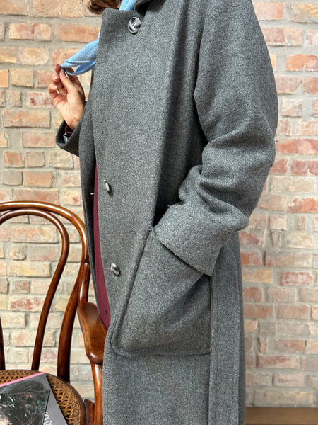 Una siluette moderna e leggermente over ed una lunghezza importante fanno di questo cappotto il capo perfetto per affrontare l'inverno con stile. Cappotto monopetto a due bottoni, in panno di pura Lana 100%. Rifiniscono il collo un classico rever e nonostante l'abbottonatura sia profonda, grazie al bottone sottogola puoi chiuderlo all'occorrenza fino in alto. Dietro c'è lo spacco per maggiore agio nei movimenti ed in dotazione c'è la sua cintura che ti permetterà di avvitarlo al corpo. All'interno è tutto foderato con fodera in Viscosa.