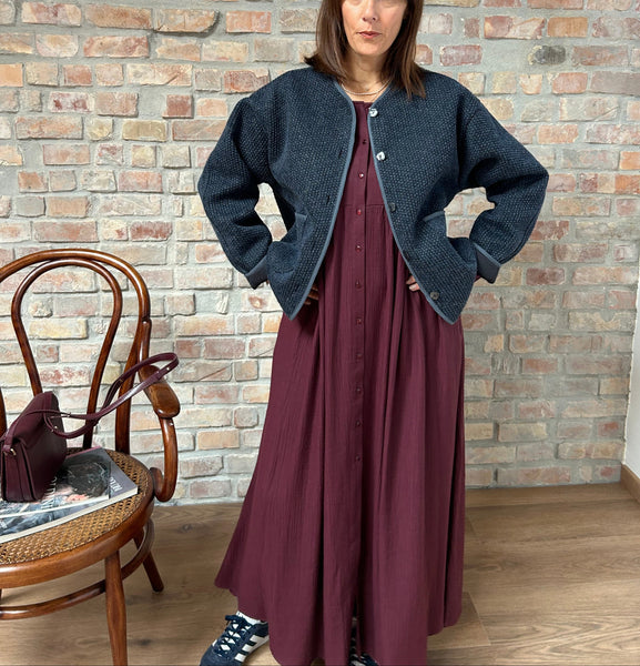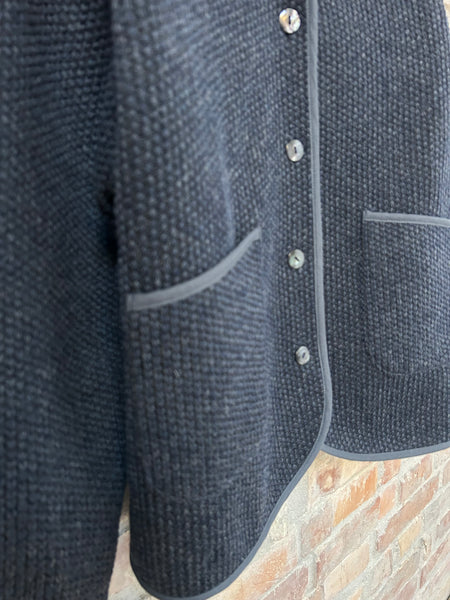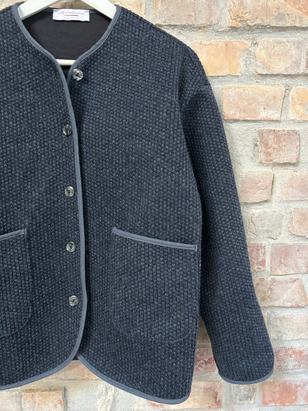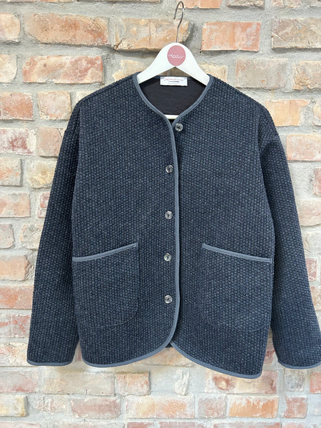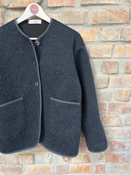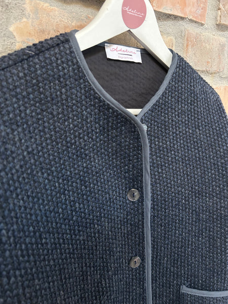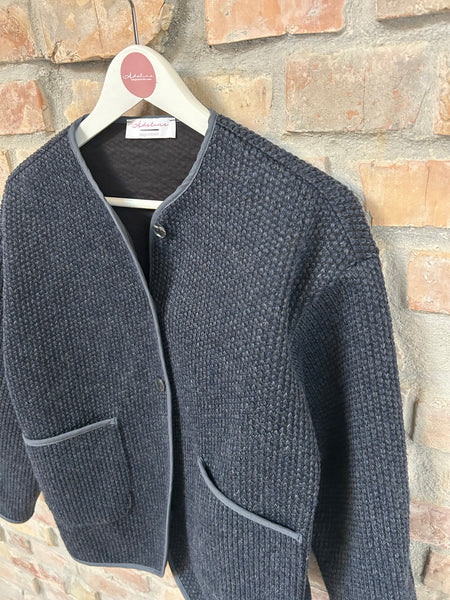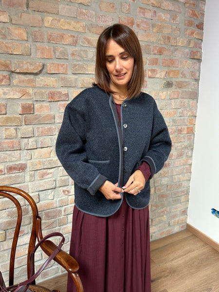 Realizzato in neoprene misto Lana, il neoprene è all'interno e la Lana all'esterno . Il modello è perfetto per ogni occasione. Senza collo e abbottonatura davanti. Tasche applicate e tutto bordato a contrasto. Nella sua semplicità è quel capo che ti svolta qualsiasi outfit